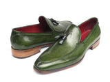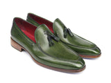 Paul Parkman Men's Tassel Loafer Green Hand Painted Leather Shoes (Id#083)