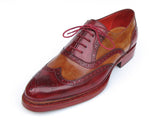 Paul Parkman Men's Triple Leather Sole Wingtip Brogues Bordeaux & Camel Shoes (Id#027)