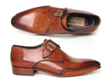 - Paul Parkman Men's Monkstrap Tobacco Handsewn Twisted Leather Shoes (Id#24Y56)
