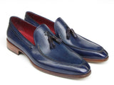 Paul Parkman Men's Tassel Loafer Blue Hand Painted Leather Shoes (Id#083)